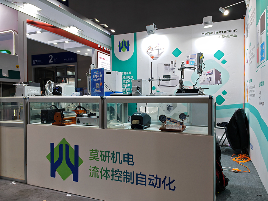 展會現(xiàn)場,莫研機(jī)電的展位號為 N7A22,精心陳列了滴定儀、生物發(fā)生器、蠕動泵、注射泵等多款先進(jìn)儀器,以及靜電紡絲系統(tǒng)、切向流系統(tǒng)、稱重分裝系統(tǒng)等系統(tǒng)應(yīng)用。其中,自動化配料系統(tǒng)與生物反應(yīng)器系統(tǒng)堪稱明星展品。自動化配料系統(tǒng)以其先進(jìn)智能控制核心驚艷全場,能迅速獲取產(chǎn)品配方信息,并一鍵下發(fā)至各分配器。FKE - A5 全自動生物反應(yīng)器作為生物反應(yīng)器系統(tǒng)代表,高精度 DO 控制與全自動過程控制能力,為高校實(shí)驗(yàn)及科研工作筑牢堅(jiān)實(shí)技術(shù)支撐,其簡潔界面與自由擴(kuò)展性能,深度契合科研個性化需求,有力推動實(shí)驗(yàn)進(jìn)程。